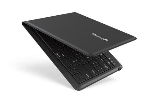 这款键盘名为 Universal Foldable Keyboard,具备折叠功能。微软表示这款键盘提供了超薄和超轻的设计,所以消费者可以到处携带。另一个特点就是这款键盘可以通过蓝牙同时配对两款设备,例如 iPhone 和 iPad,只需要点击键盘上的一个按钮就可以在两款设备之间切换。这款键盘还提供了全键盘的设计,因而不需要担心在输入方面会有什么不同。